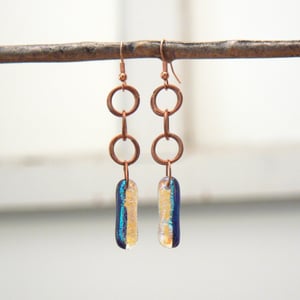 Multi-colored dichroic glass earrings with hand formed copper chain